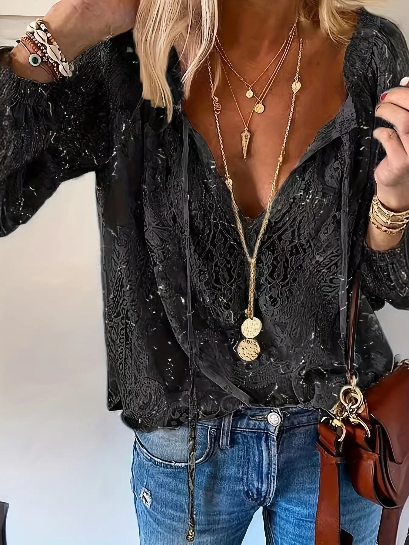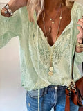 Elegant Lace Long Sleeve Bell Shirt with Contrast Lace Trim