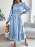 Elegant Long Sleeve Hem Round Neck Dress