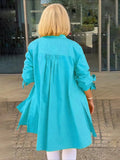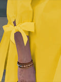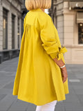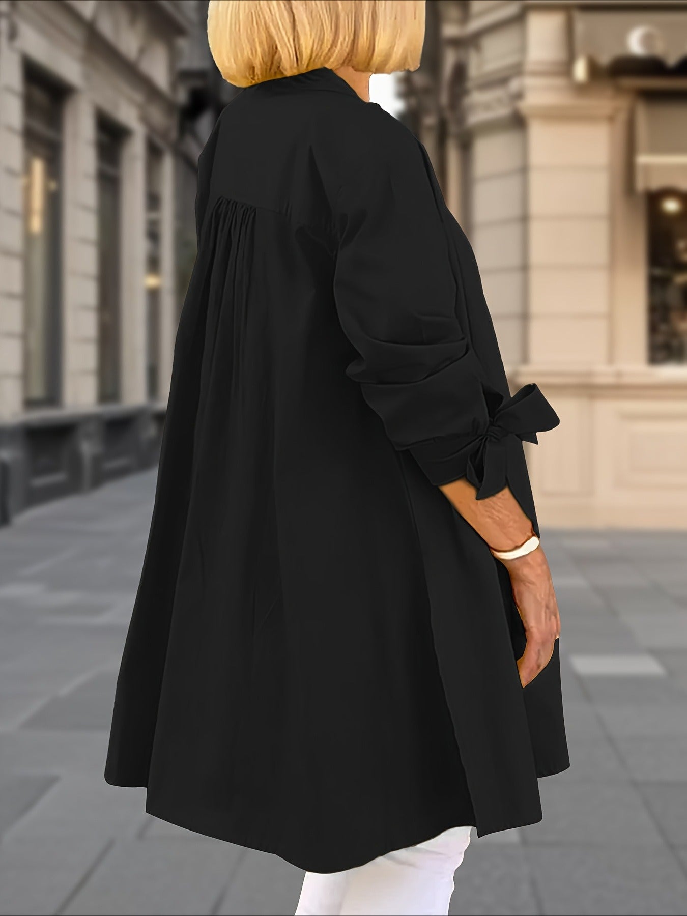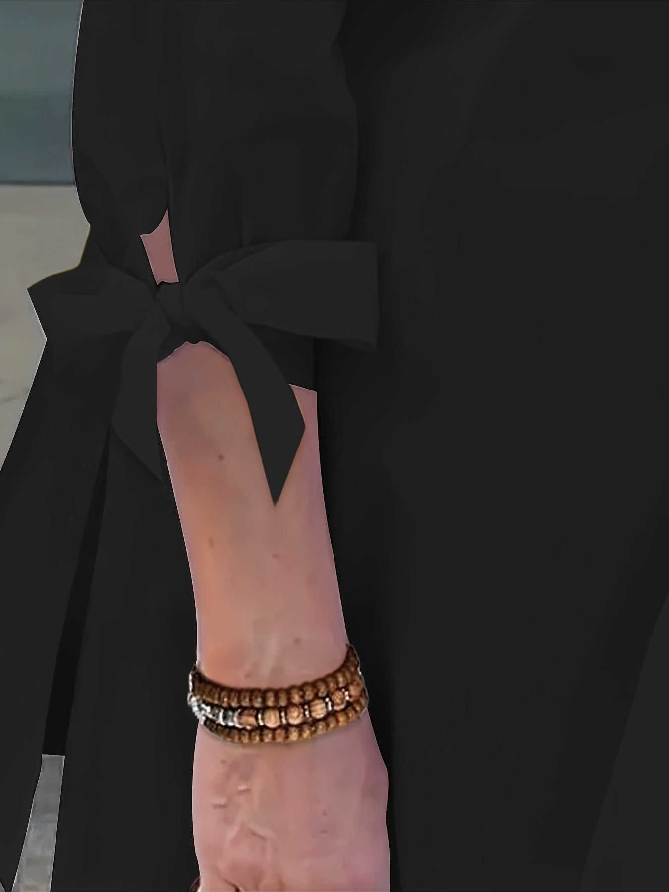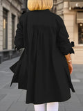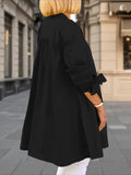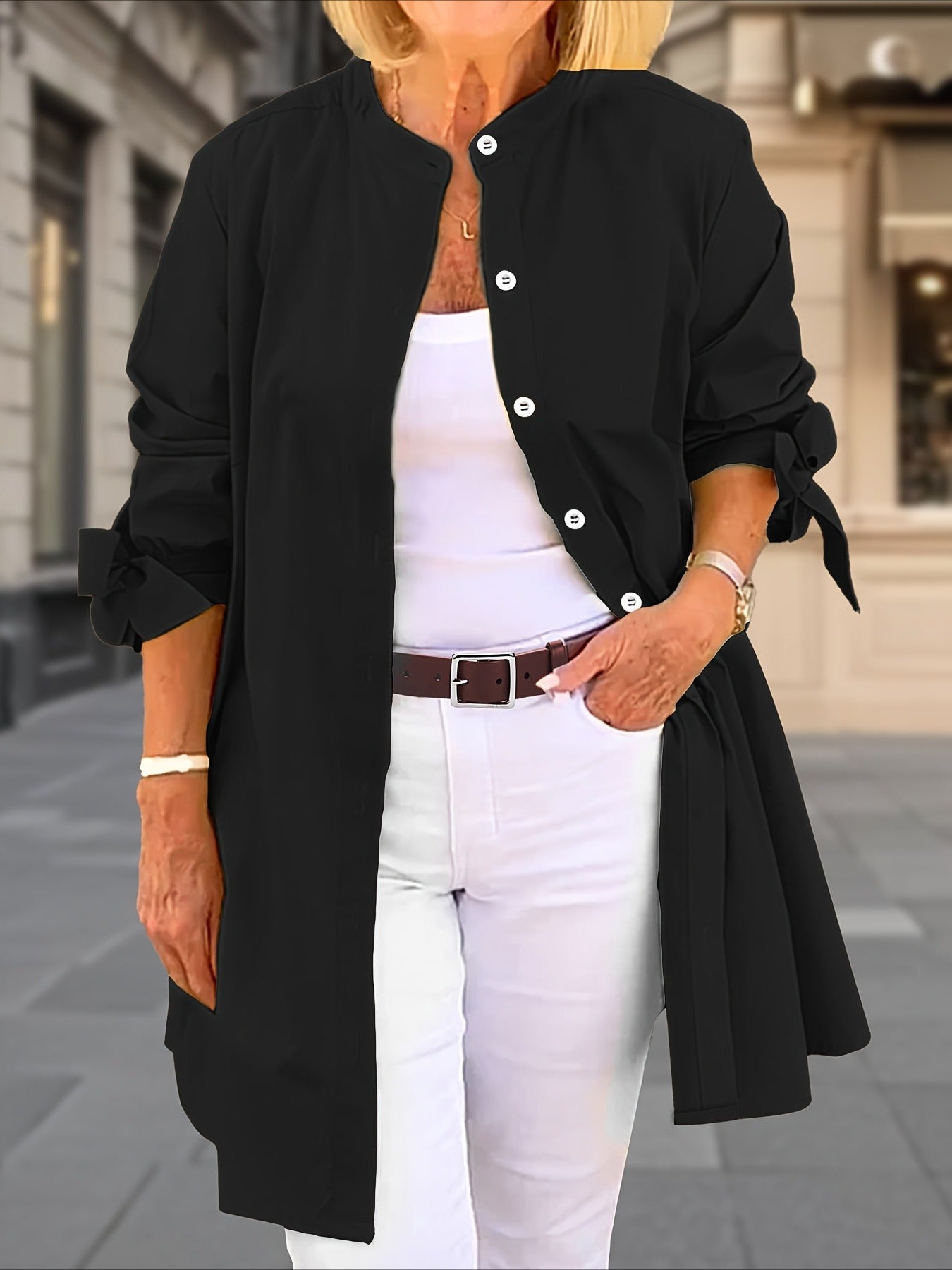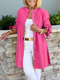 Elegant Loose-Fit Adjustable Cuffs Side Slit Breathable Fabric Round Neck Nontransparent Material Shirt