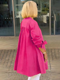 Sale Elegant Loose-Fit Adjustable Cuffs Side Slit Breathable Fabric Round Neck Nontransparent Material Shirt