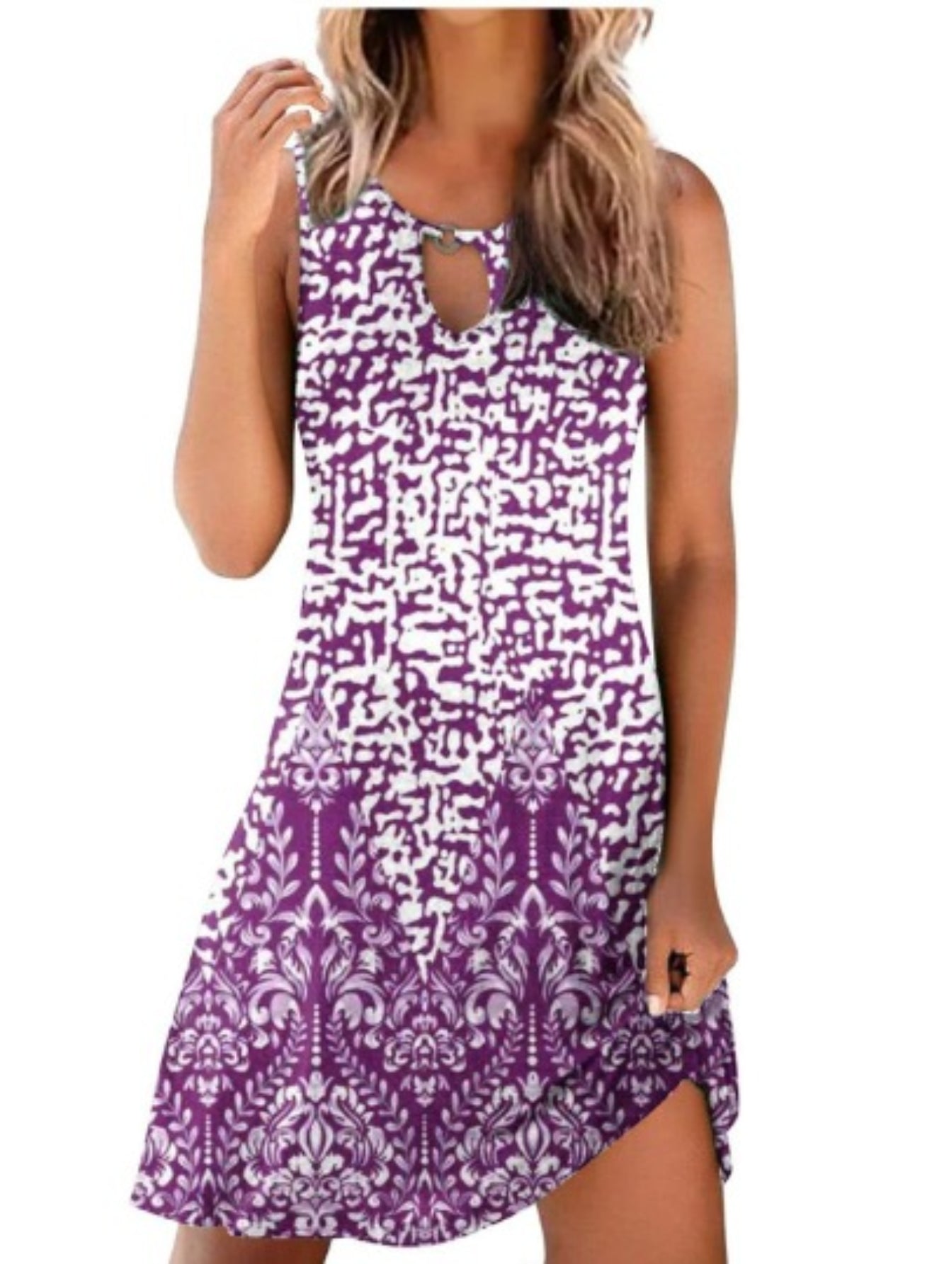 Elegant Sleeveless Dress - All-Over Keyhole Design, Flattering Crew Neckline