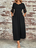 Sale Solid Color Single Breasted Simple Dress, Elegant Long Sleeve Maxi Loose Dress