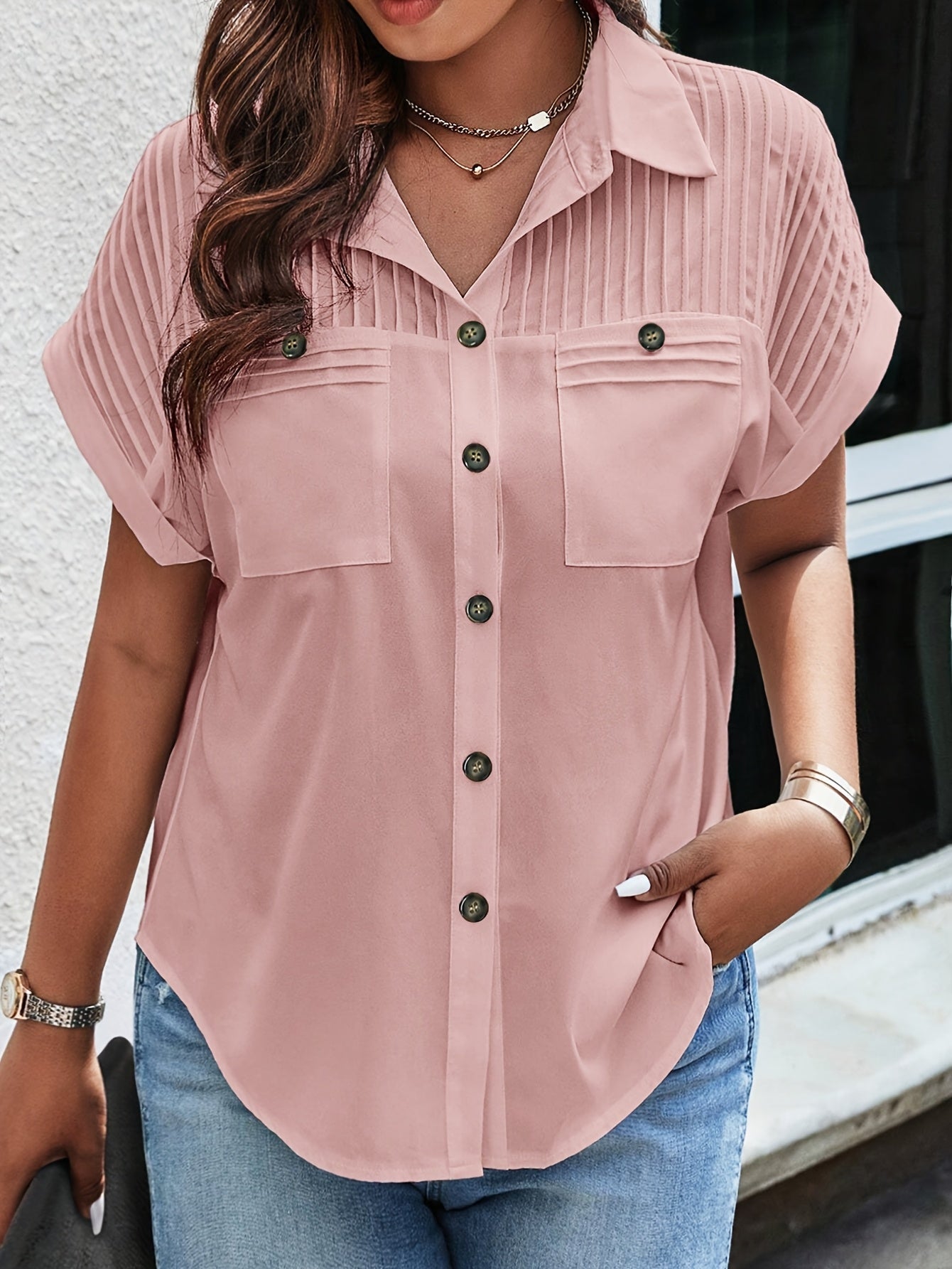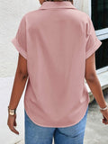 Elegant Solid Color Pleated Batwing Short Sleeve Casual Shirt