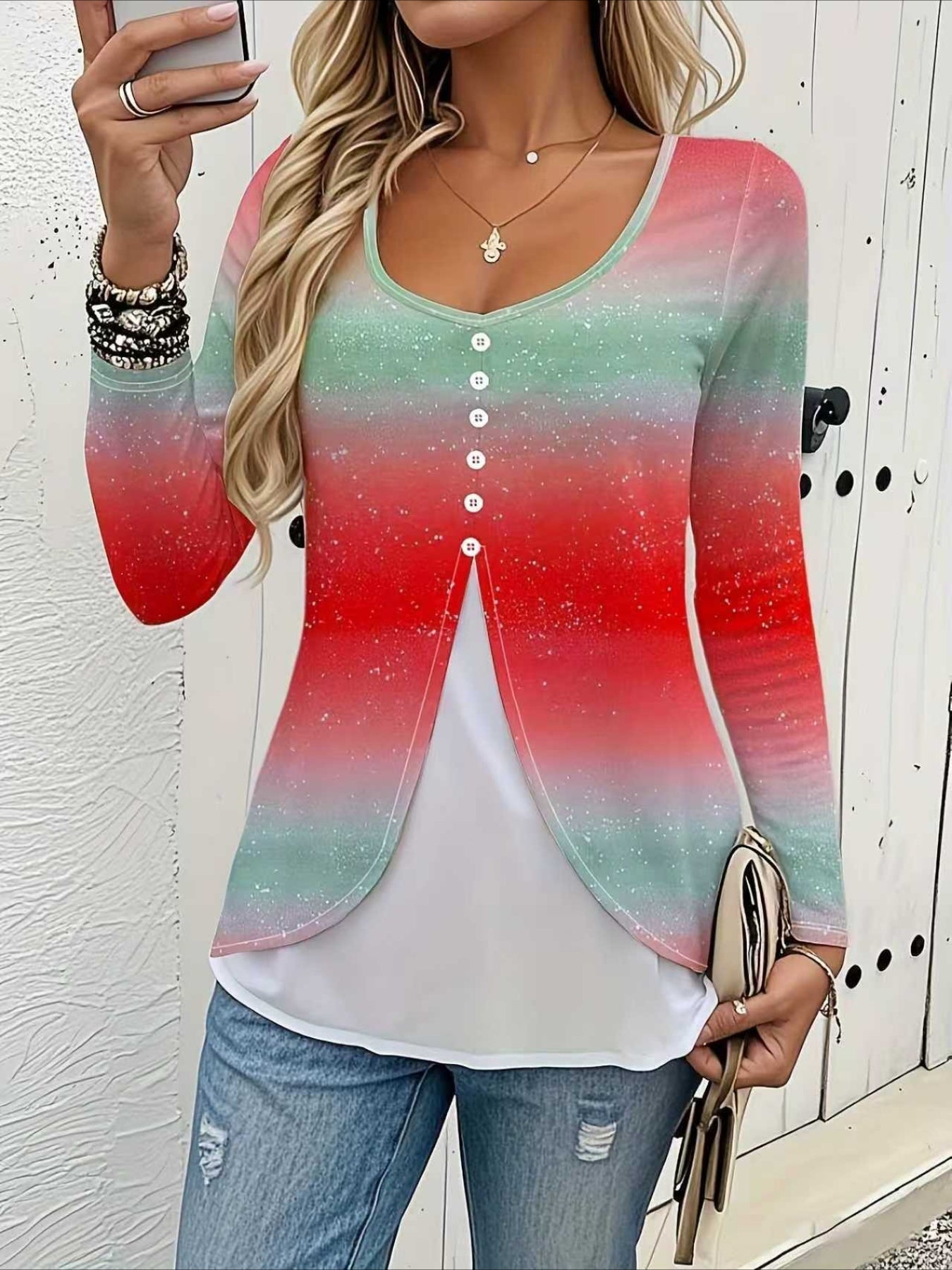Sale Graphic Geometric Striped Elegant Vintage Fashion Long Sleeve Crew Neck Regular Tops