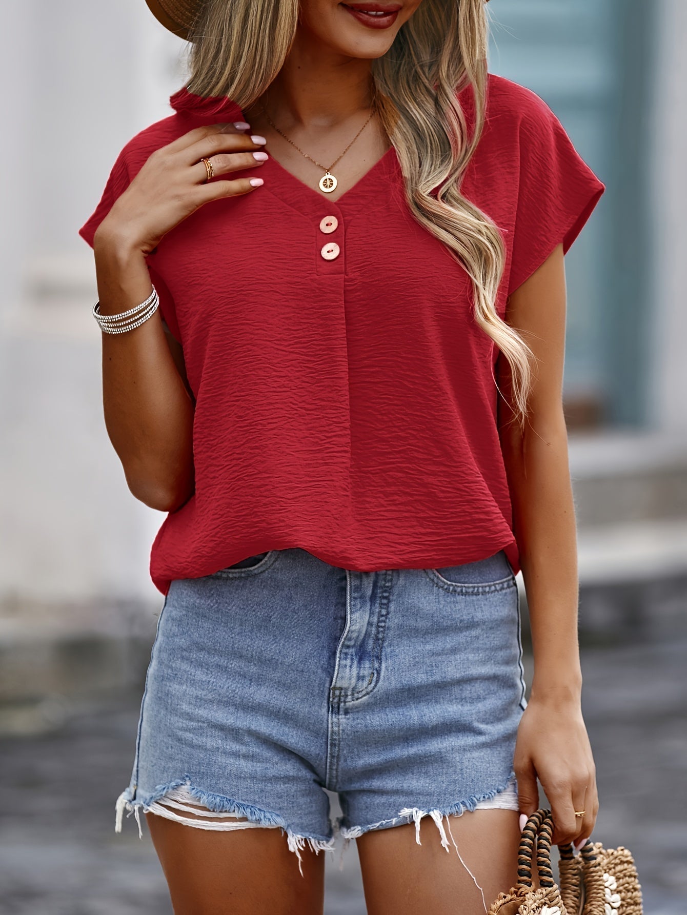Elegant V-Neck Blouse with Button Detail - Perfect Fashion