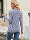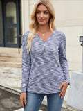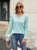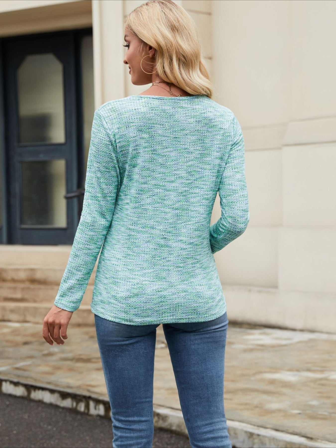 Elegant V-Neck Long Sleeve T-Shirt with Button Detail