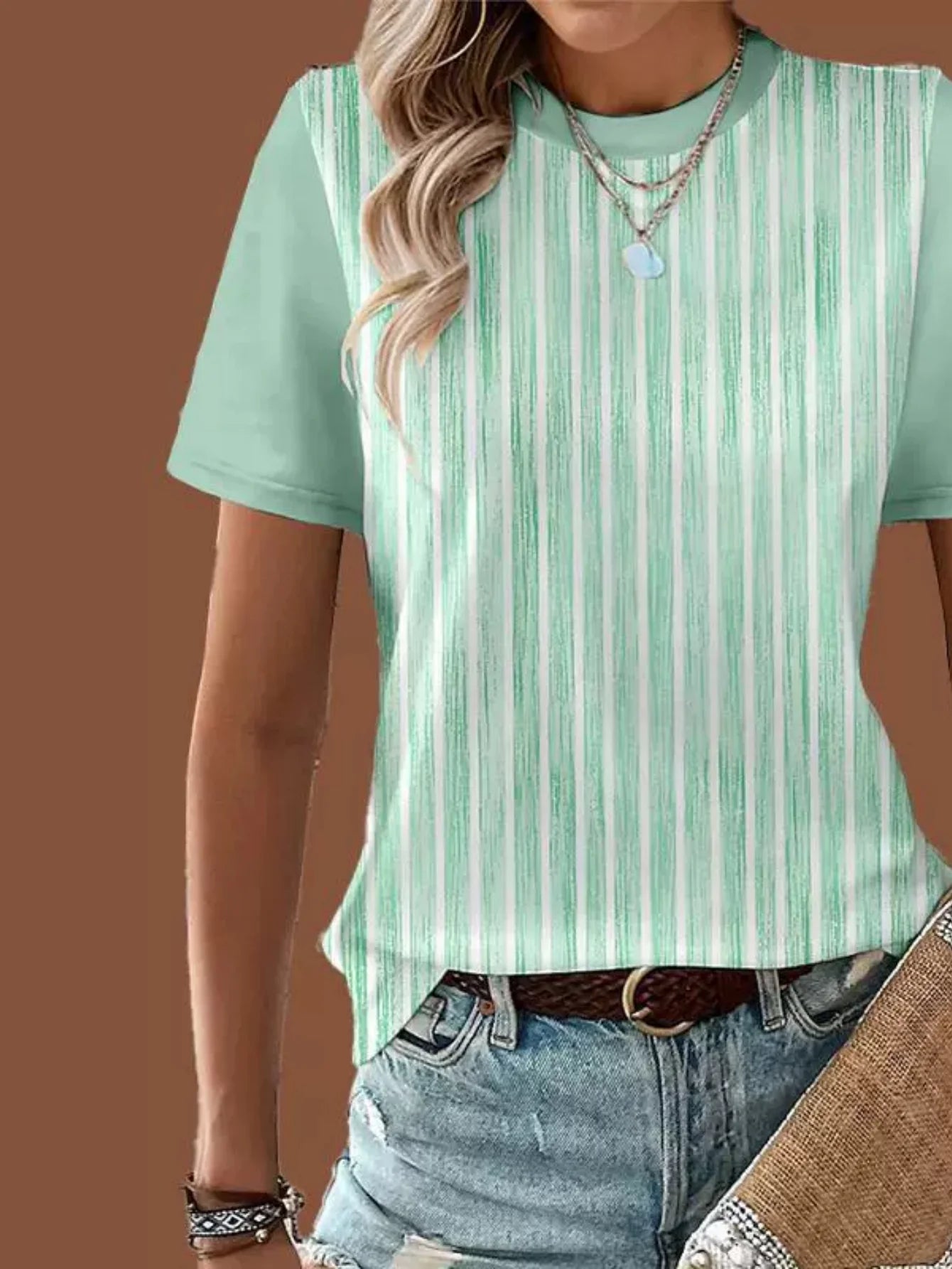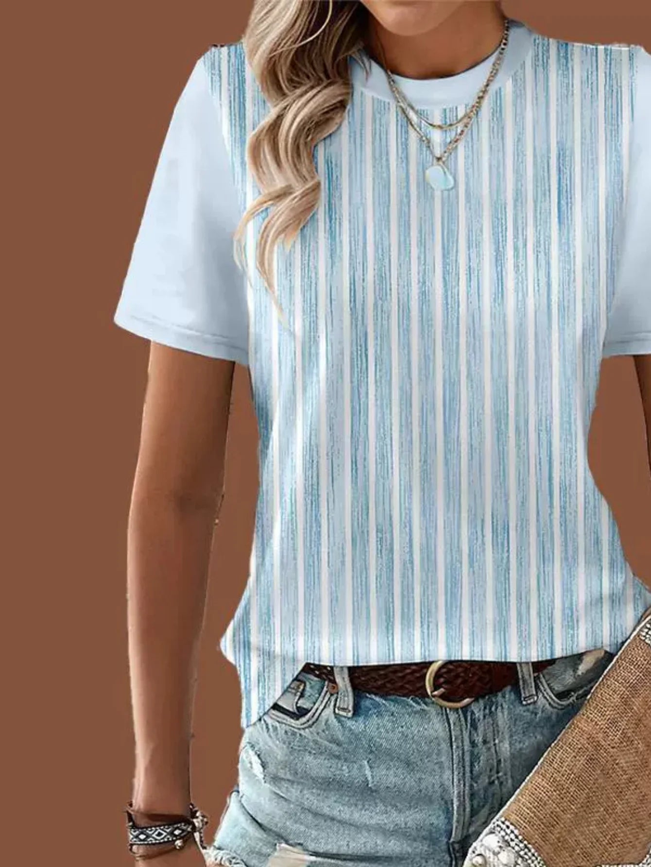 Sale Graphic Geometric Striped Elegant Vintage Fashion Long Sleeve Crew Neck Regular Tops