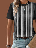Casual Patchwork Pattern Round Neck Short Sleeve Loose Women T-Shirt