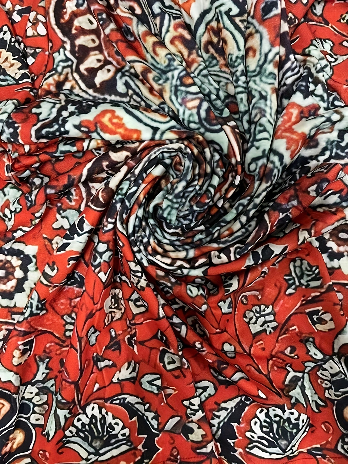 Sale Elegant Floral Print High-Stretch Round Neck Long Sleeve Top