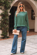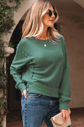 Evergreen Solid Color Raw Seam Patchwork Textured Drop Shoulder Sweatshirt