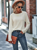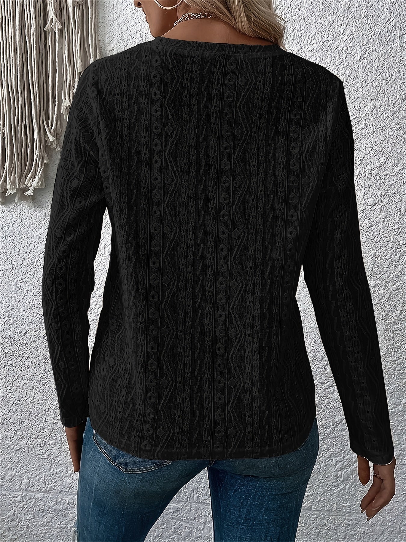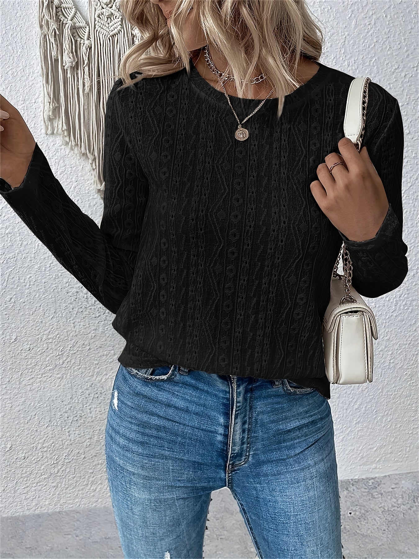 Eyelet Embroidery T-Shirt, Crew Neck Long Sleeve T-Shirt, Casual Every Day Tops