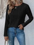 Sale Striped Botton Crew Neck T-Shirt, Elegant Long Sleeve T-Shirt