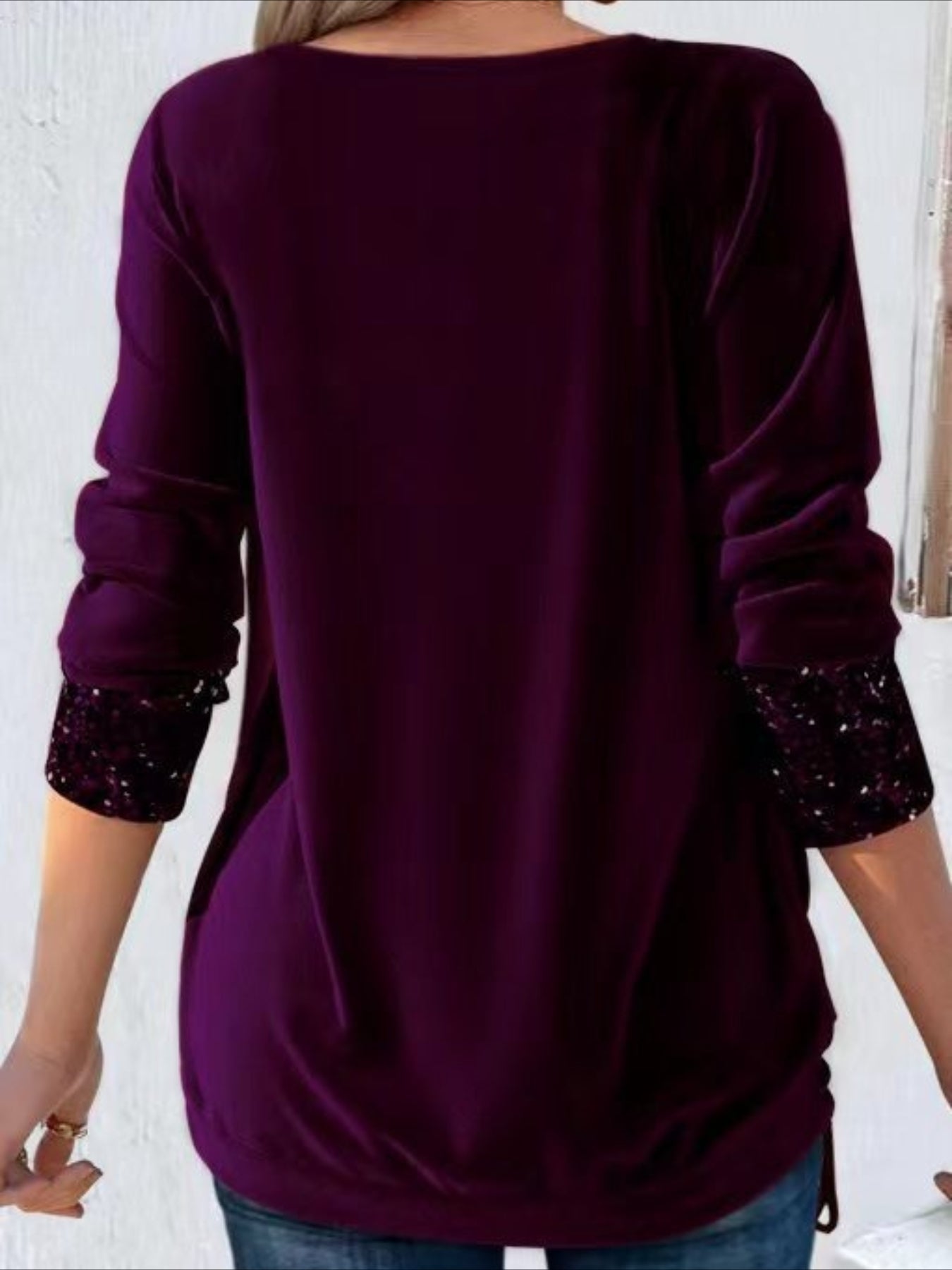 Solid Color Swinging Neck Long Sleeve Sexy Velvet T-shirt