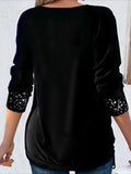 Sale Lace Trim Pleated Solid Color Long Sleeve Button-Up T-Shirt