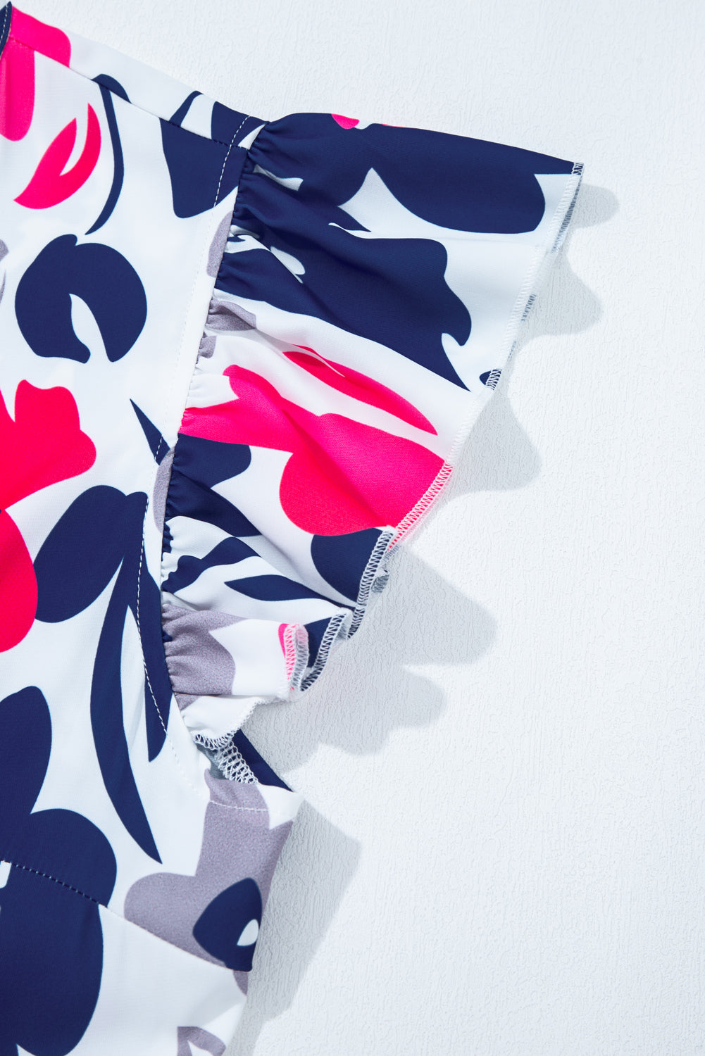 Sale Fashion Floral Print Notched Neck Flutter Sleeve Mini Dress
