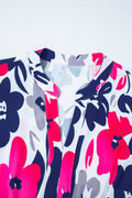 White Floral Print Half Button Mandarin Neck 3/4 Sleeve Maxi Dress