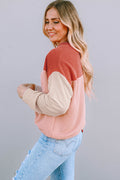 Sale Women's Color Block Quarter Zip T-Shirt - Casual Long Sleeve Top