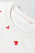 Fiery Red Tiny Hearts Printed Long Sleeve Top Drawstring Lounge Pant Set