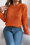 Sale Flamingo Halloween Spooky Face Hollowed Pattern Casual Sweater