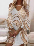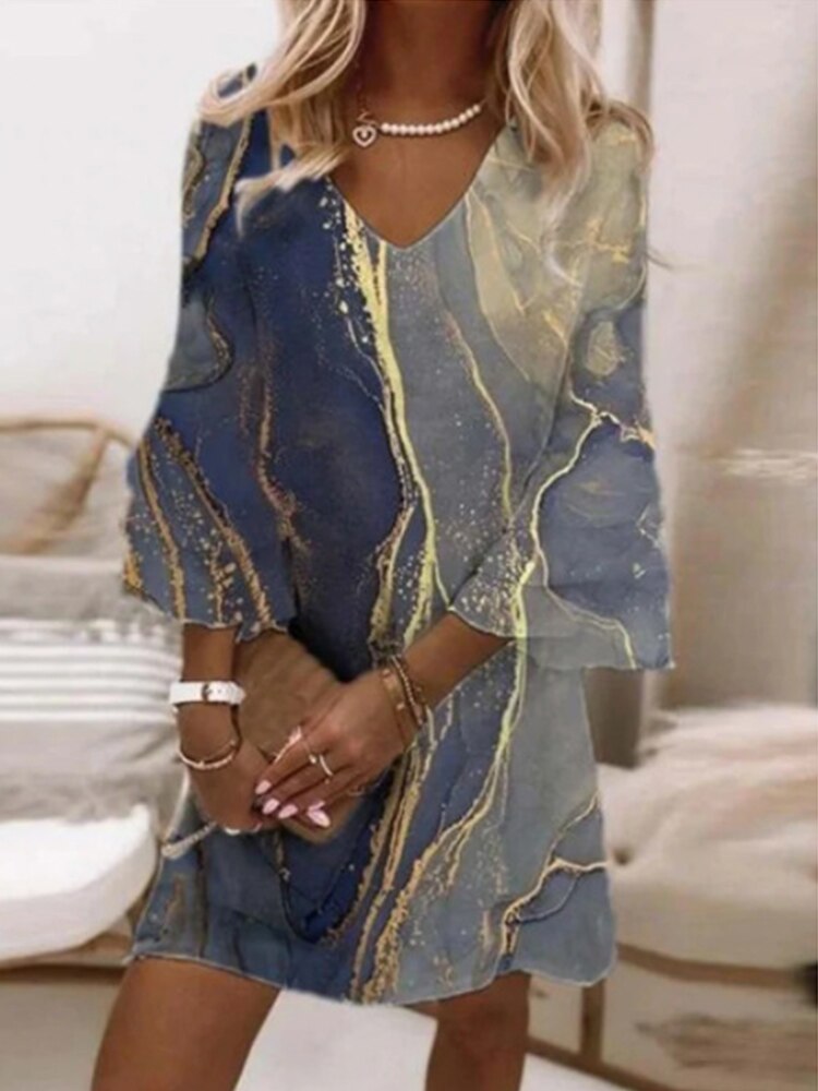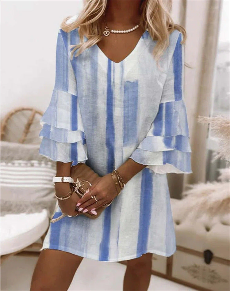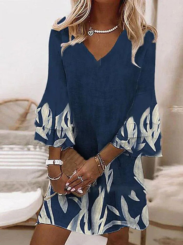 Flared Sleeve Elegant V-Neck Loose Mini Dress