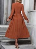 Elegant Solid Color Ruffle Hem Long Sleeve Lapel Collar Midi Dress