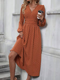 Floral Balloon Sleeve Spring/Fall Dress V Neck Long Sleeve A-Line Dress