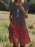 Sale Three-quarter Illusion Sleeve Floral Dress, Casual Keyhole Crew Neck Loose Dress