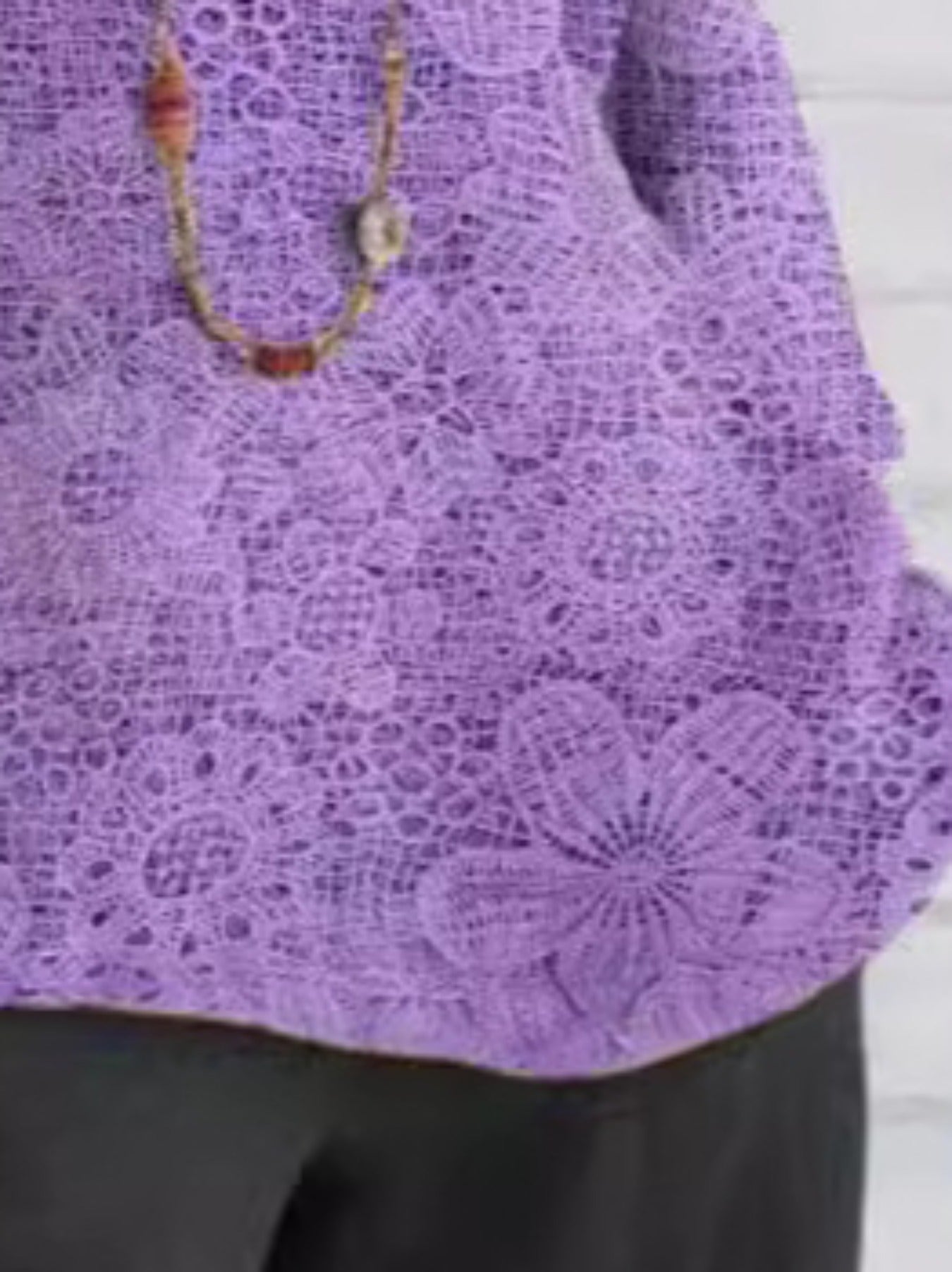 Sale Casual Contrast Lace Round Neck Long Sleeve T-Shirt