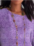 Sale Cozy Chic Knit Crew Neck Long Sleeve Pullover with Ethnic Pattern Sweater
