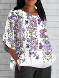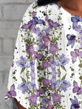 Floral Half Sleeve Crew Neck Casual Summer Top
