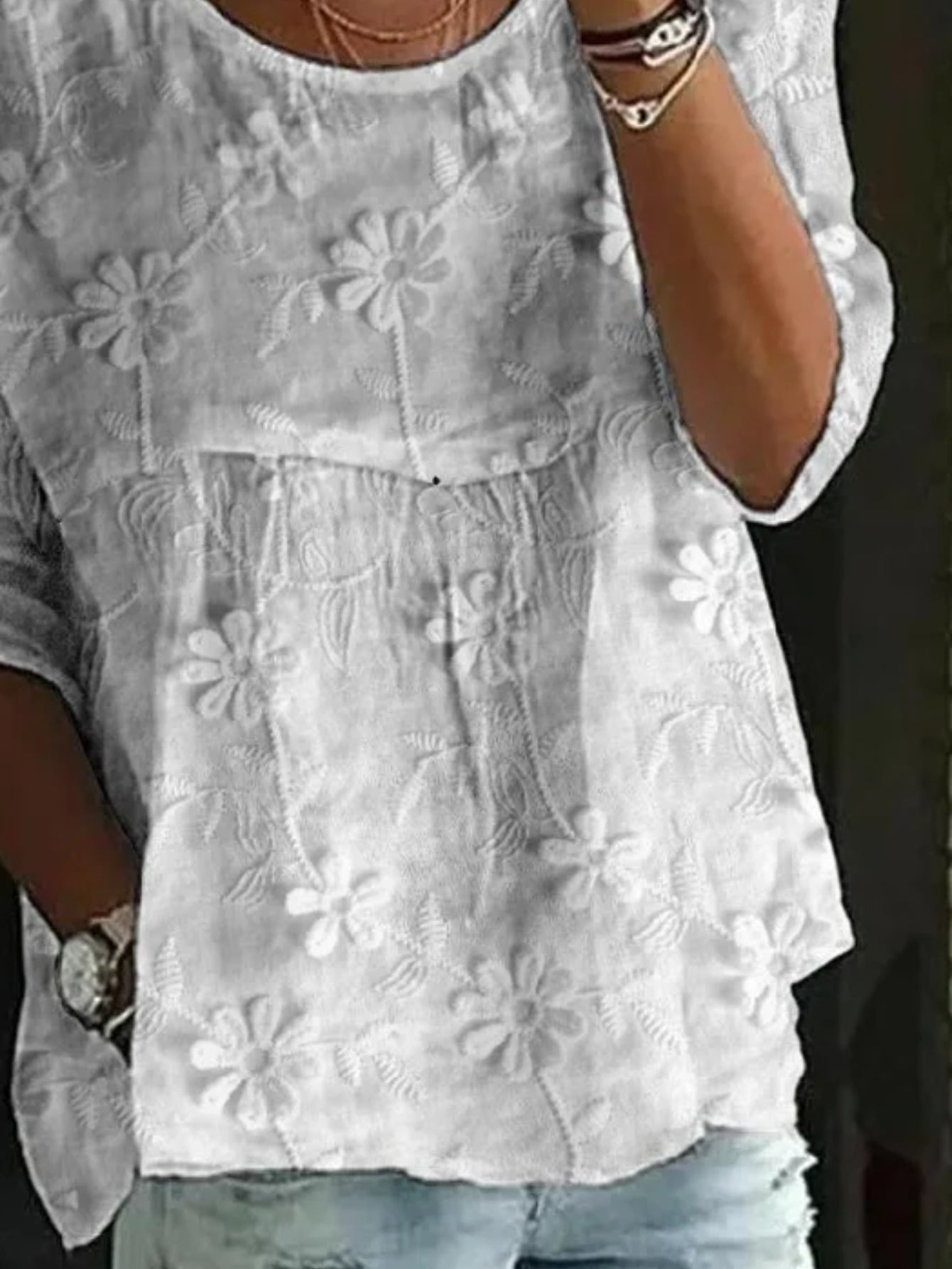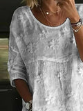 Crew Neck Floral Long Sleeve Comfy Casual Sweater Tee