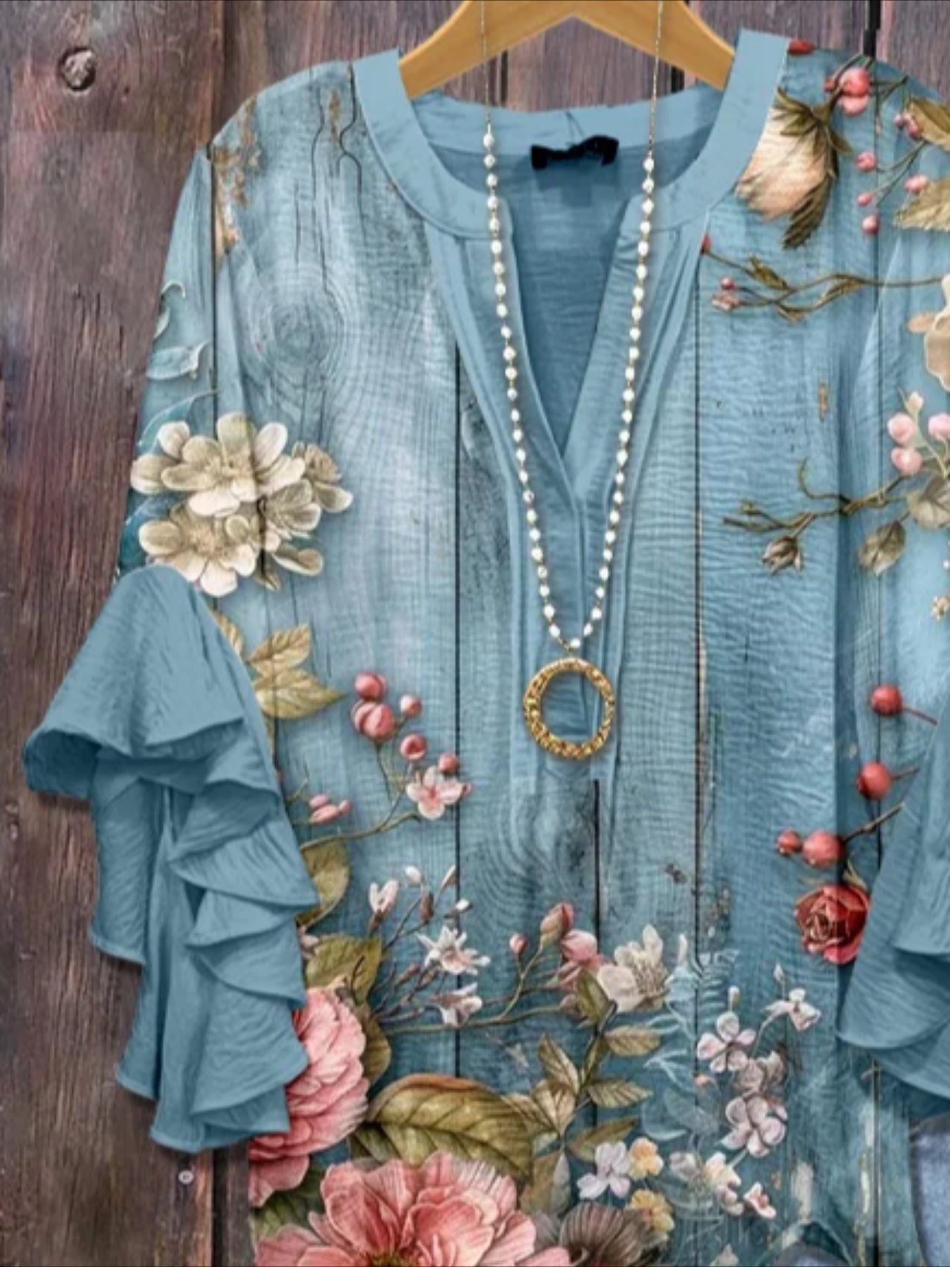 Women Floral Long Sleeve Comfy Casual Sweater Tee