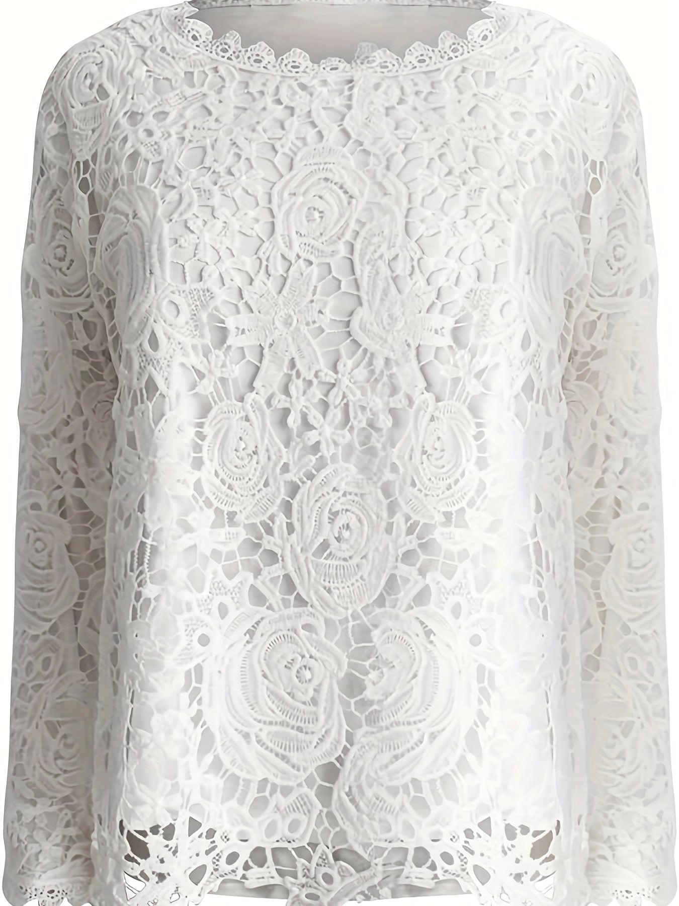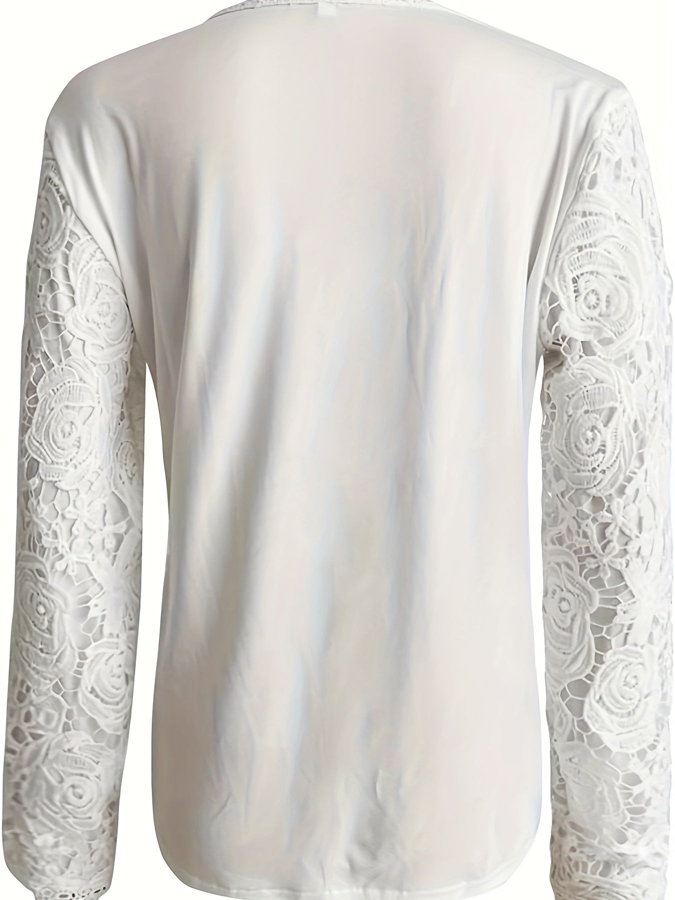 Floral Lace Stitching Crew Neck T-Shirt, Casual Long Sleeve