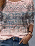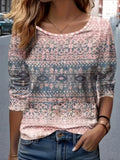 Sale Graphic Geometric Striped Elegant Vintage Fashion Long Sleeve Crew Neck Regular Tops
