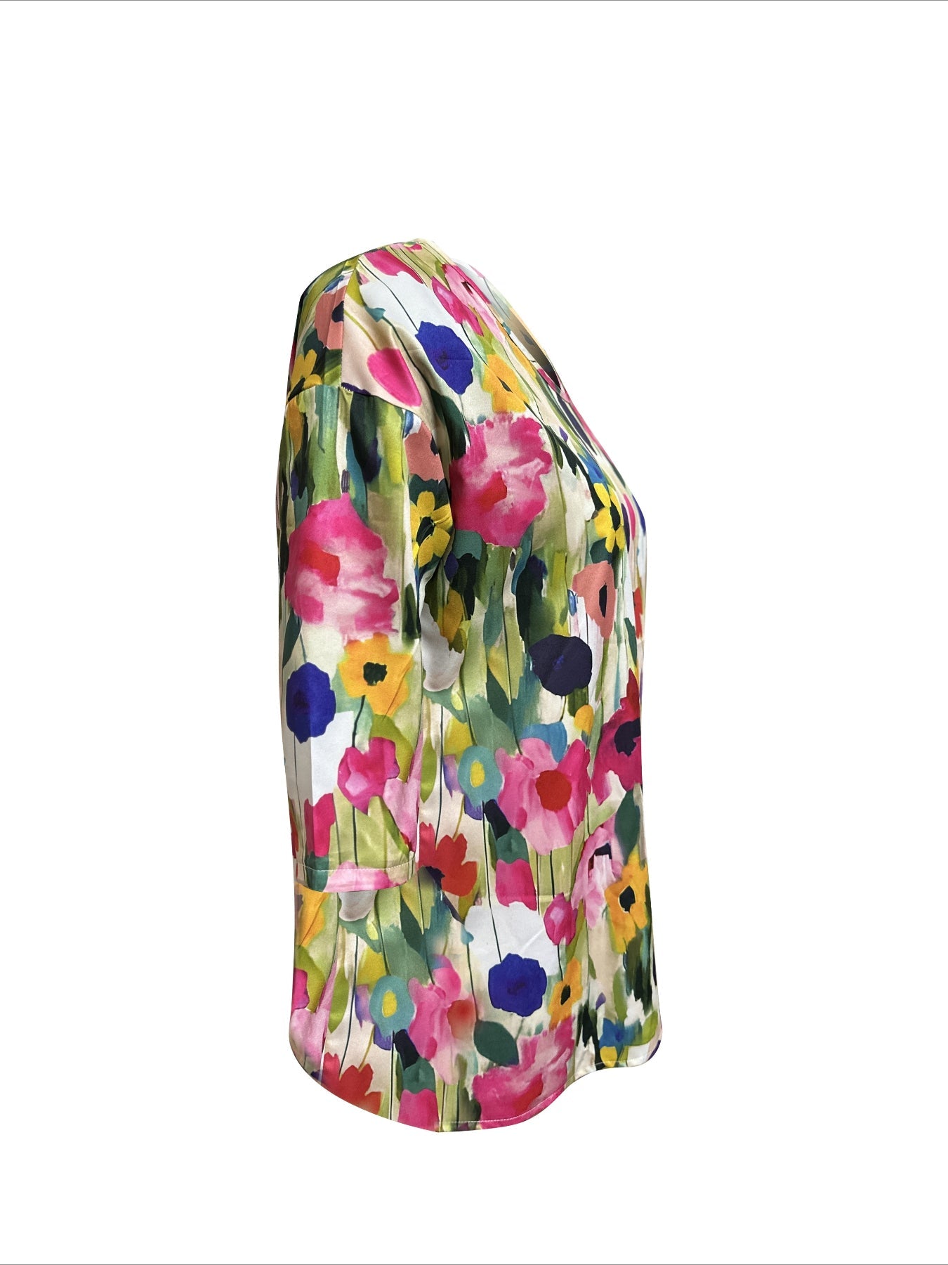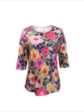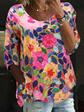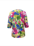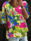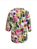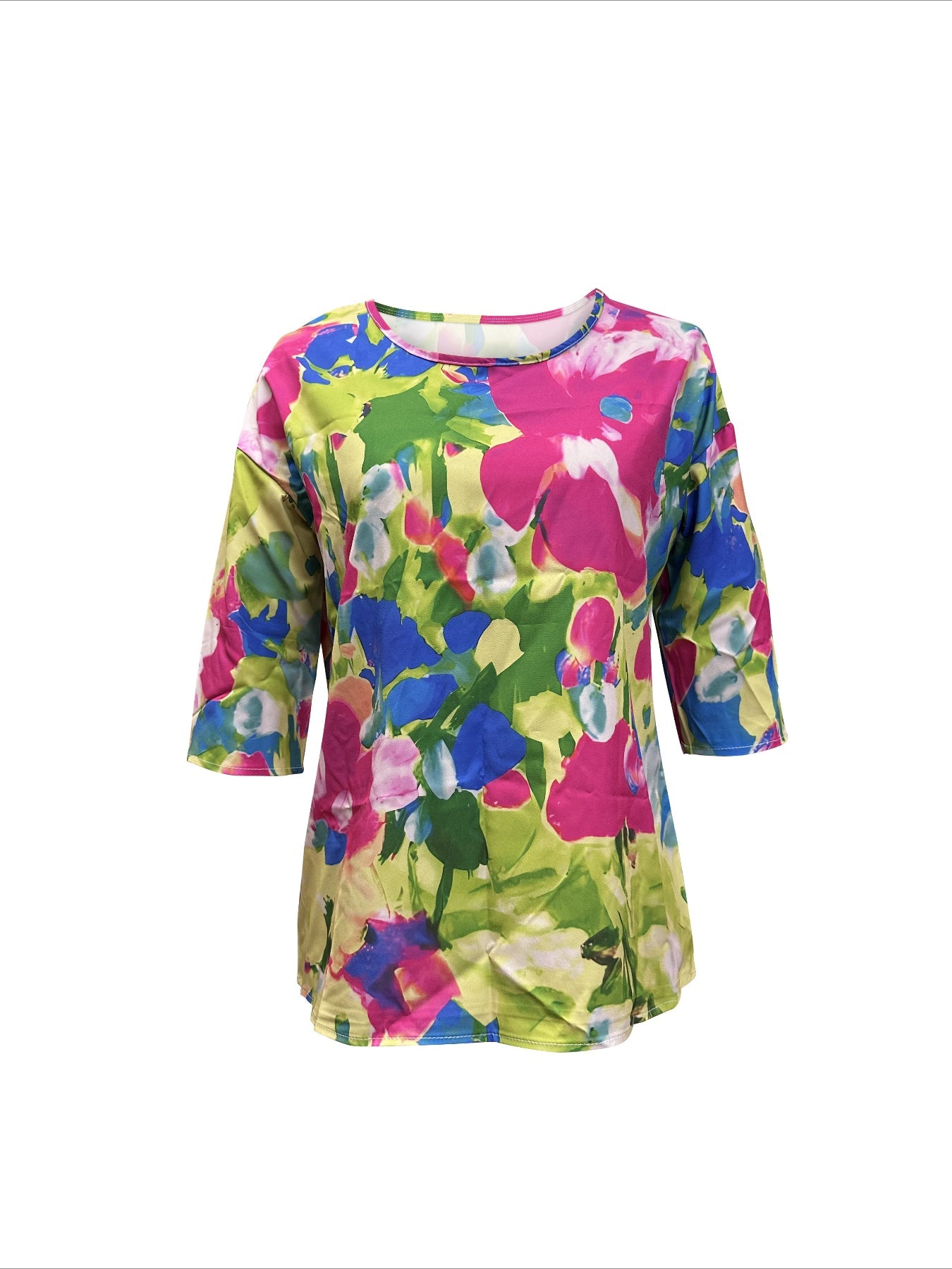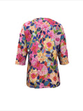 Floral Print Crew Neck Blouse, Casual 3/4 Sleeve Top