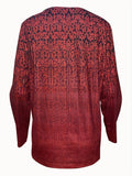 Sale Cozy Chic Knit Crew Neck Long Sleeve Pullover with Ethnic Pattern Sweater