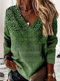 Sale V Neck Long Sleeve Geometric Regular Micro-Elasticity Regular Fit Blouse