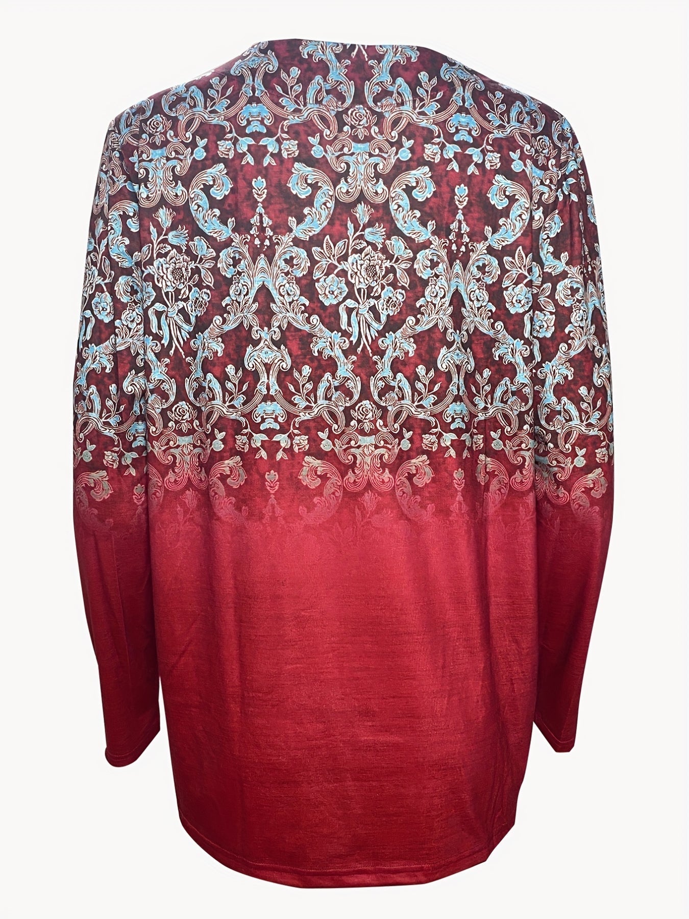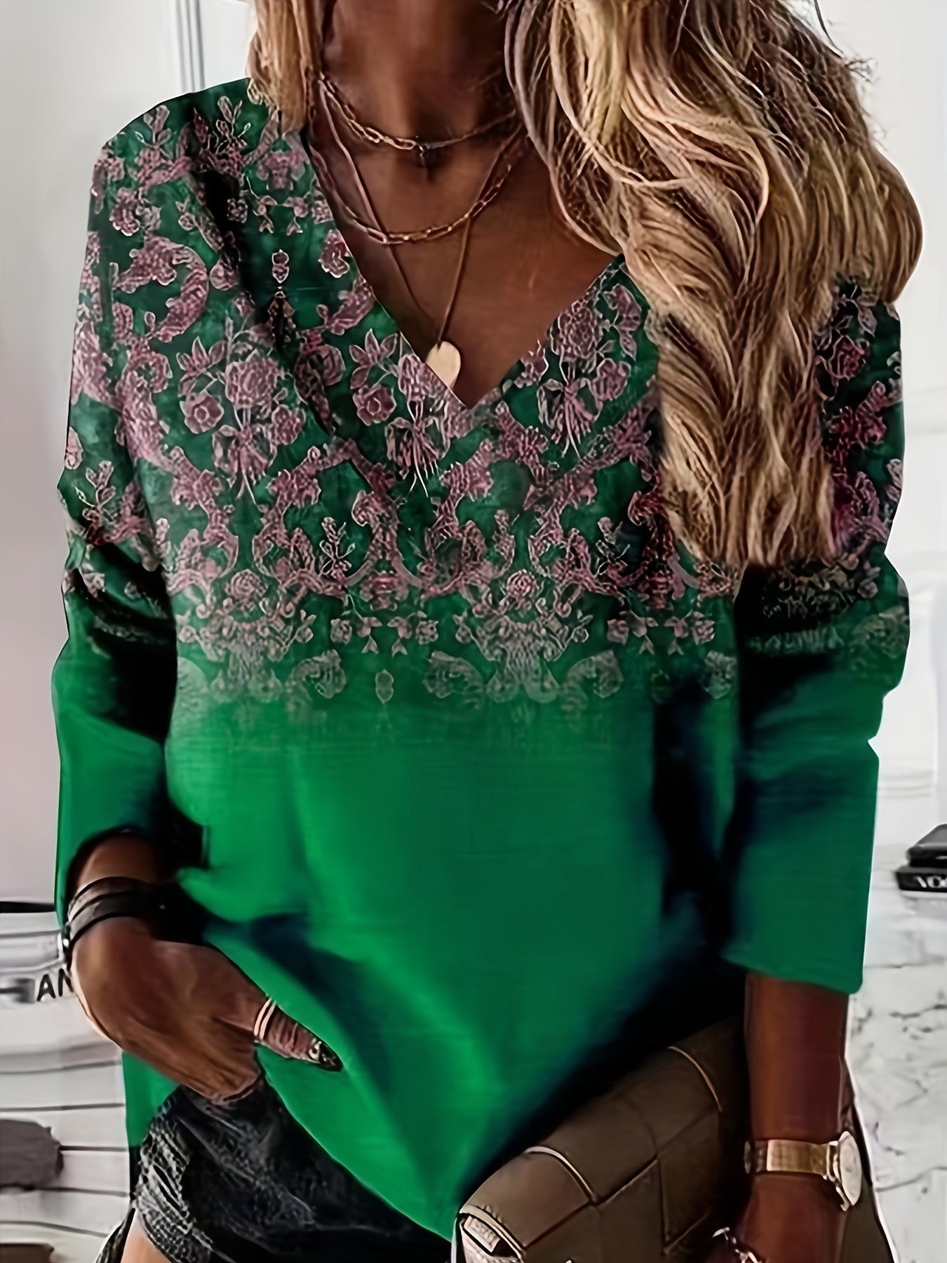 Floral Print Pullover Sweatshirt, Casual Long Sleeve V-neck Sweatshirt