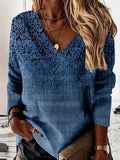 Sale Casual Contrast Lace Round Neck Long Sleeve T-Shirt