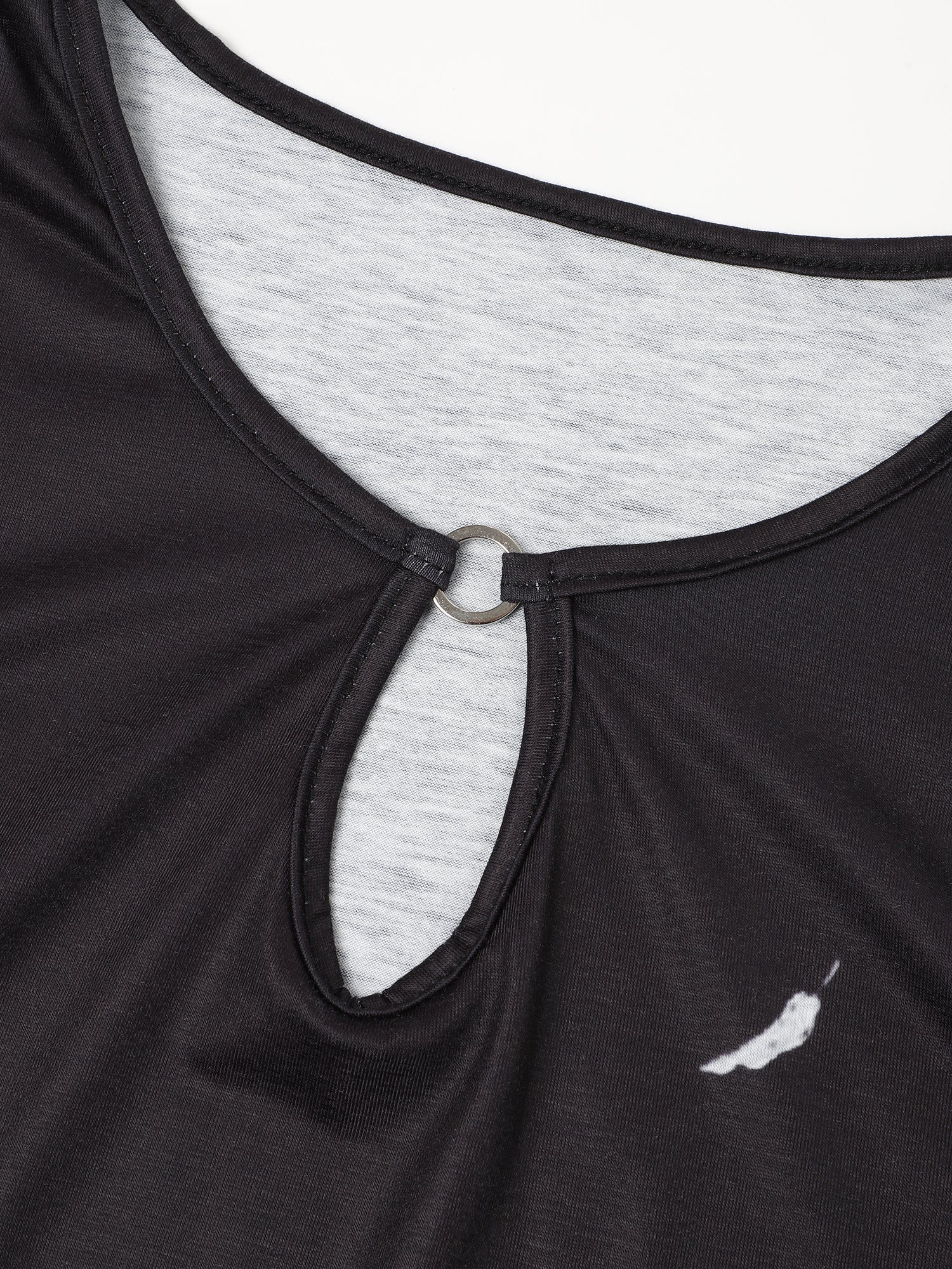 Black Rhinestone Sheer Mesh Slim Fit Long Sleeve Top