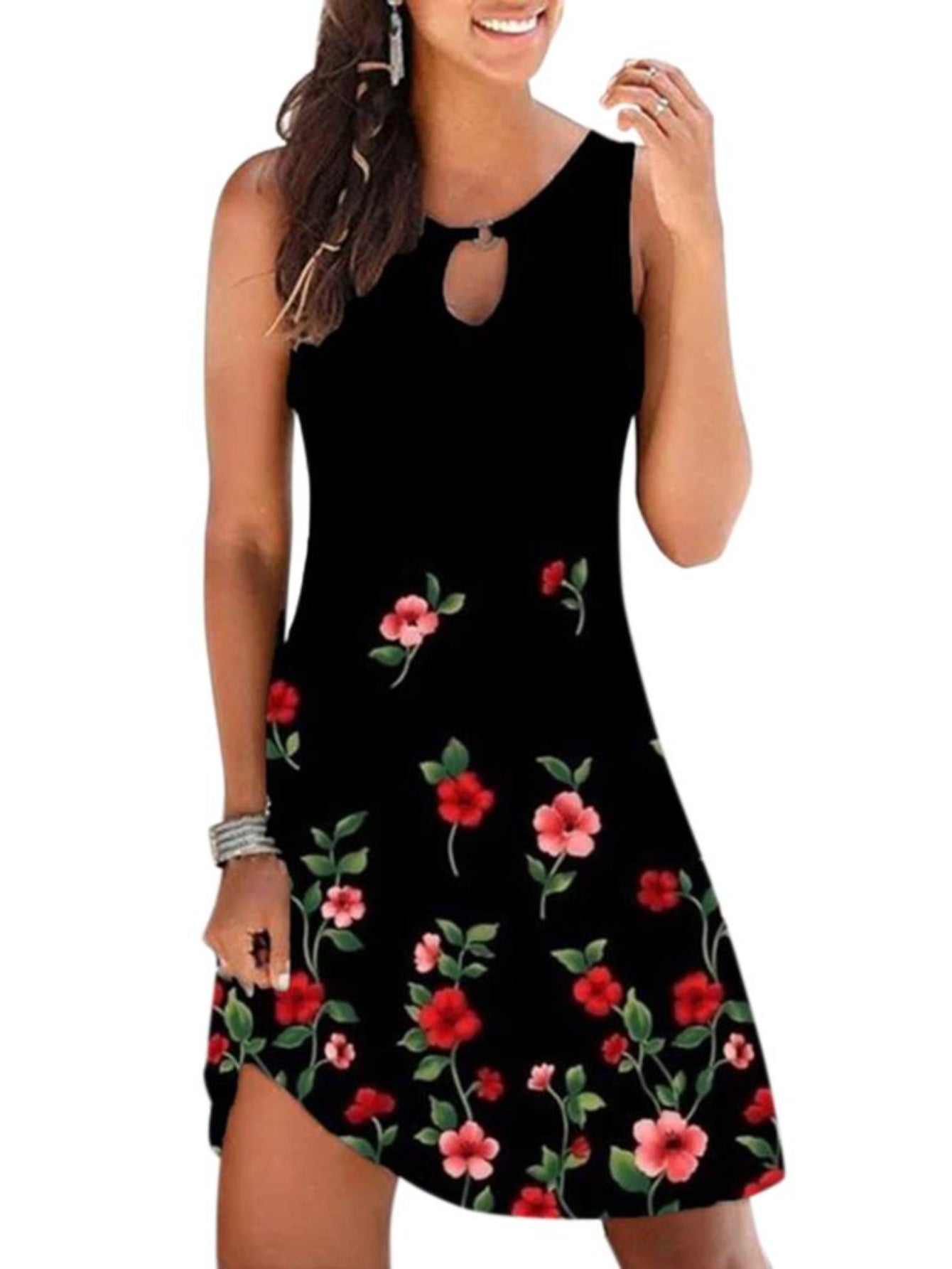 Sale Floral Print Sleeveless Crew Neck Dress, Party Bodycon Loose Stylish Dress