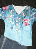 Floral Print V Neck T-Shirt, Short Sleeve Casual Top
