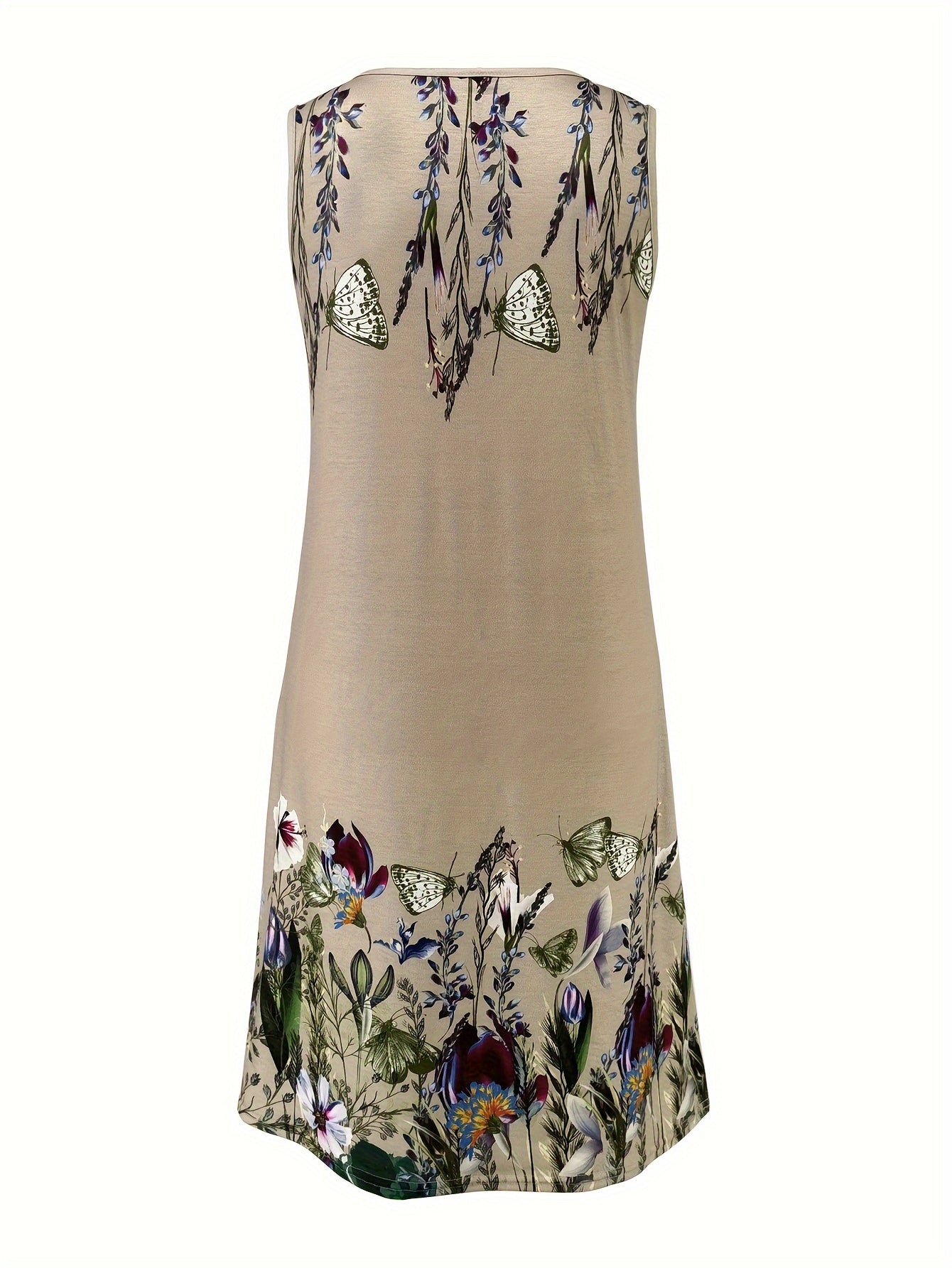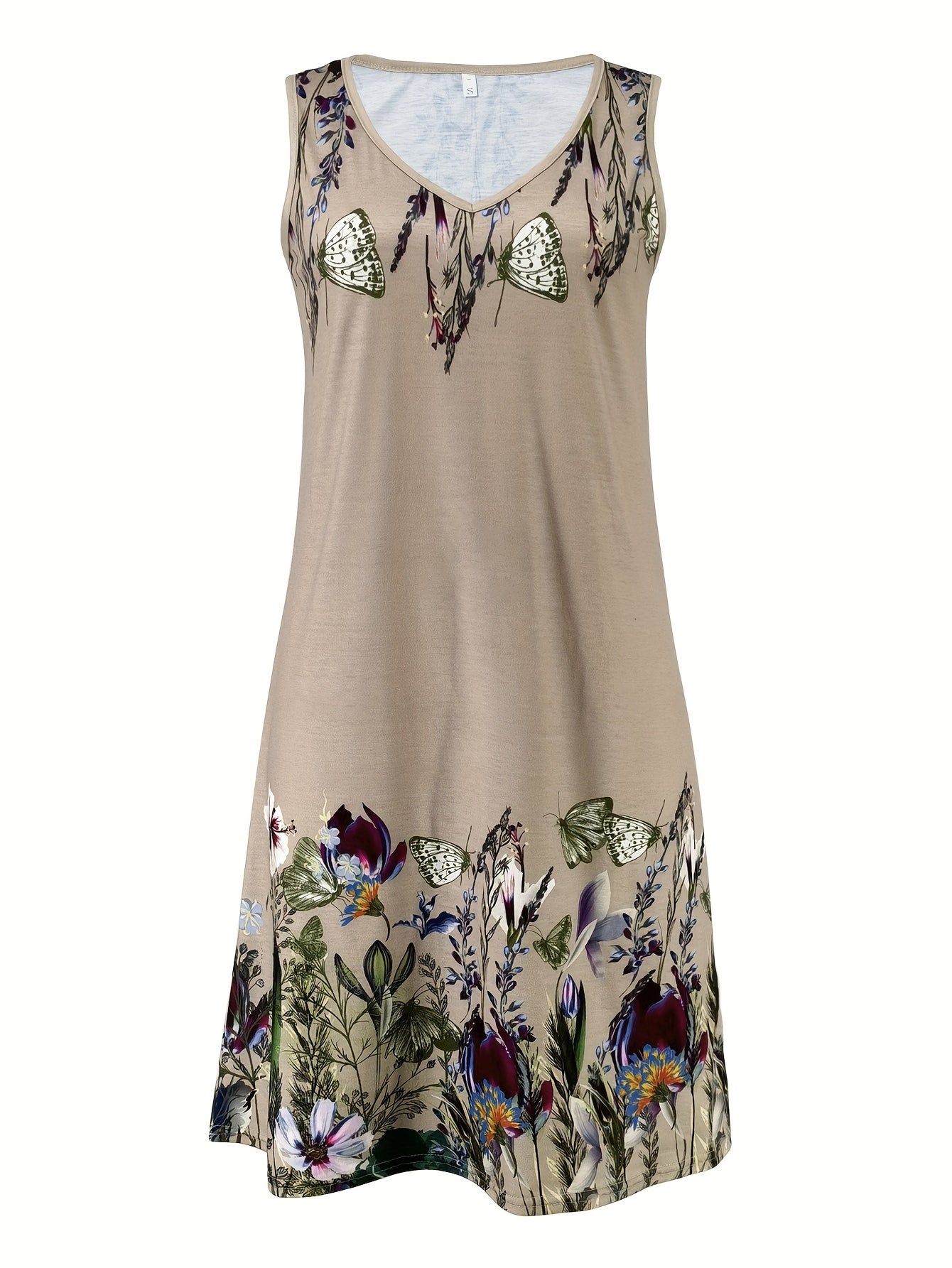 Floral Print V-neck Tank Dress, Vacation Sleeveless Dress
