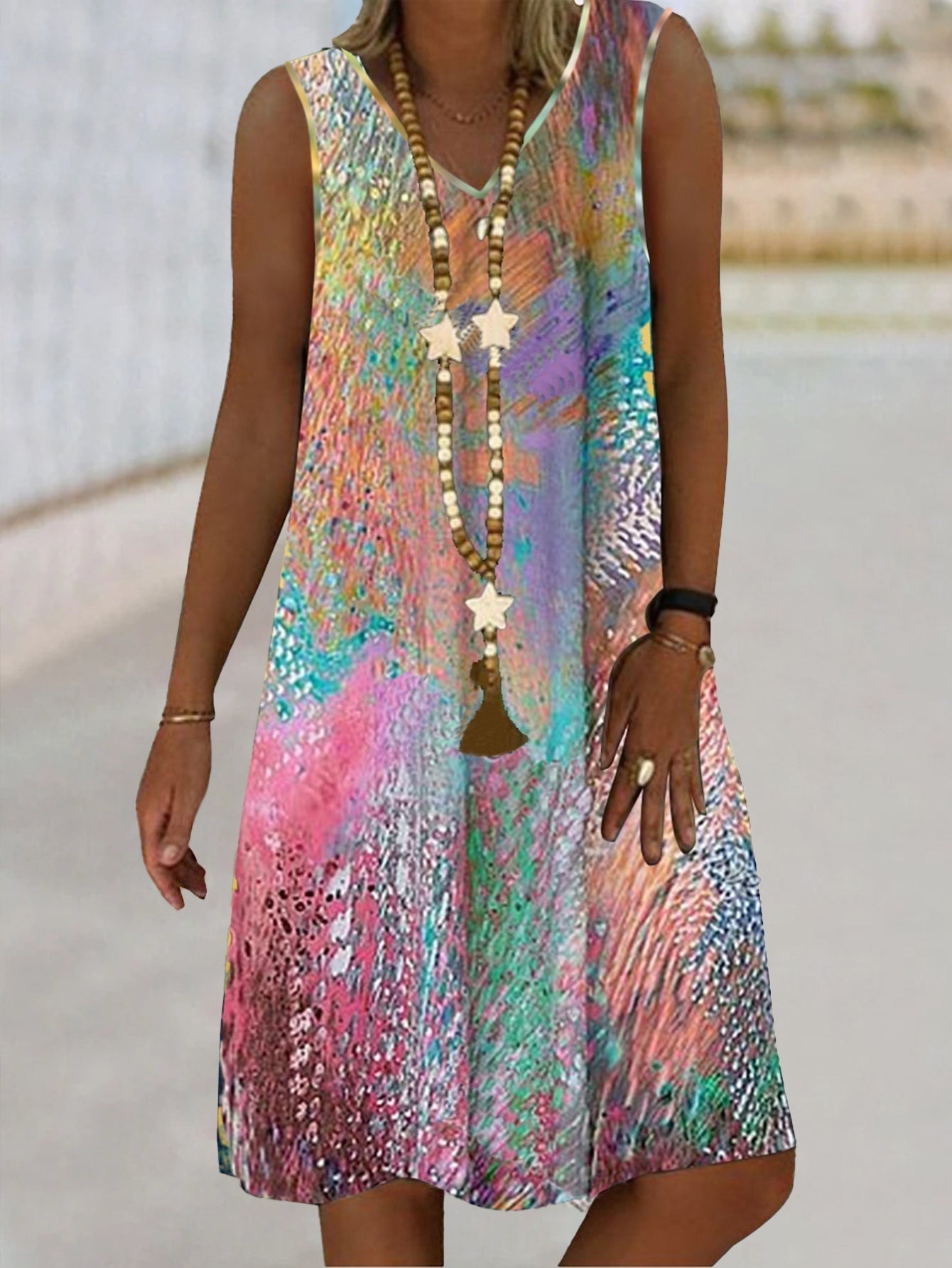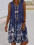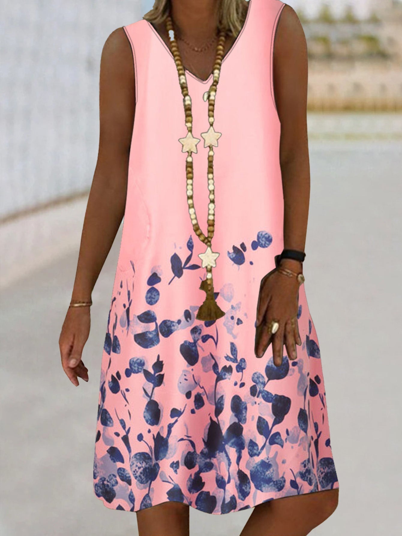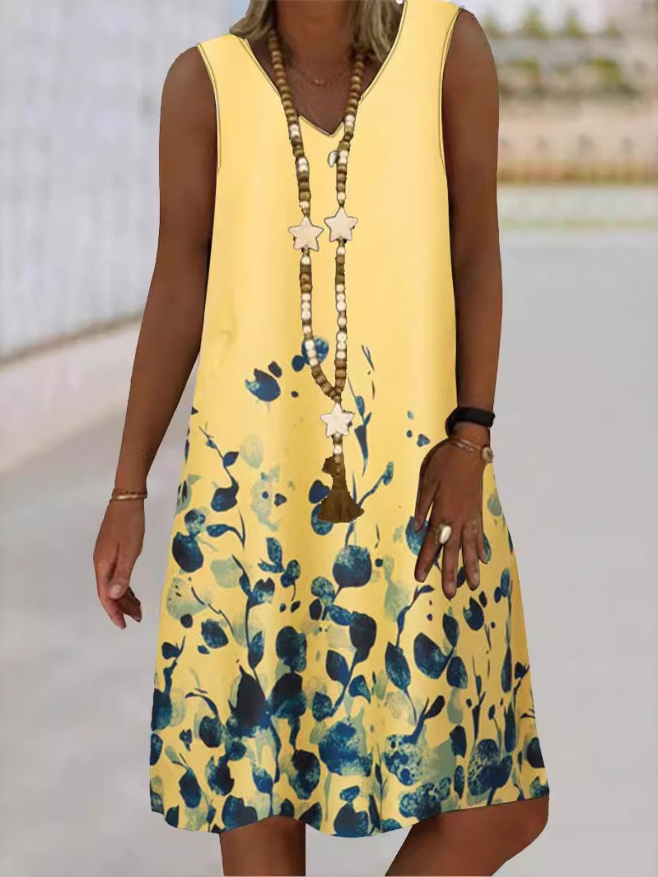 Sale Floral Print V-neck Tank Dress, Vacation Sleeveless Dress