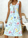 Floral Summer Crew Neck Sleeveless Tank A-Line Dress
