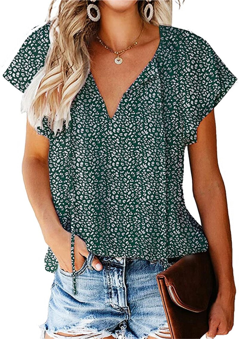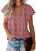 Floral V-Neck Loose Short Sleeved Chiffon T-Shirts