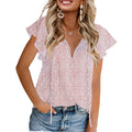 Sale Lace Splicing Swiss Dot V-neck Blouse, Elegant Long Sleeve Blouse Top