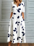 Floral V Neck Short Sleeve Dress, Pocket Ruffled Maxi Casual Dress