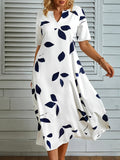 Creative Retro Printing Comfortable Soft Crew Neck Hip Wrap Knitted Sweater Dress