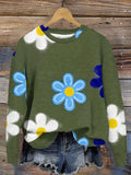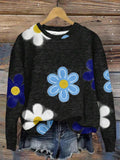 Floral Vintage Cotton-Blend Crew Neck Sweatshirt